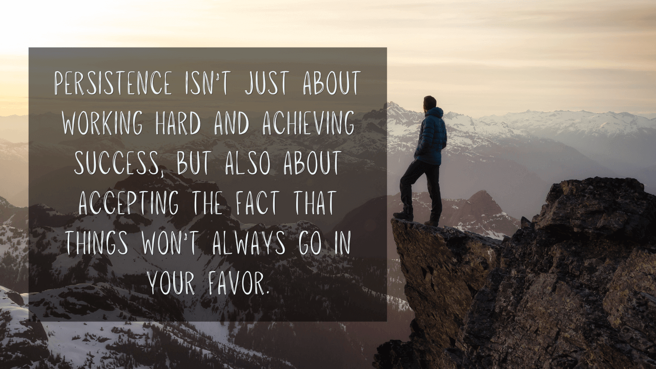 Remember, persistence isn?t just about pushing yourself to do your best or working harder than you previously have. It?s also about having the mental fortitude to keep going even after others try to bring you back down by pointing out your mistakes and flaws. So, take action and start raising your persistence levels today!